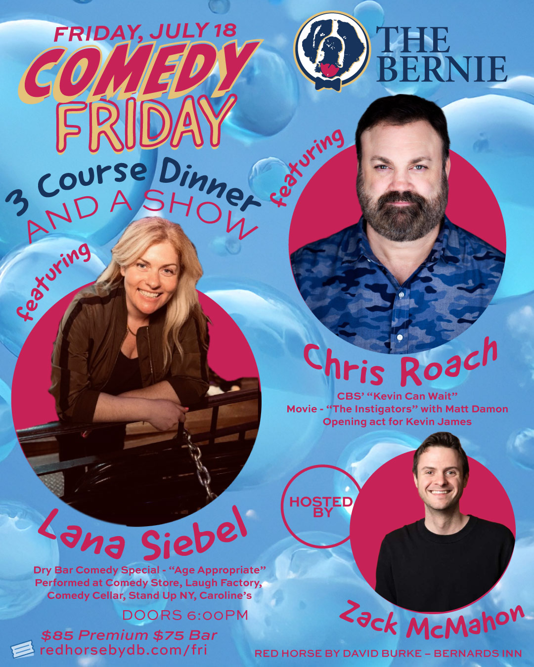 Comedy show hosted by Zack McMahonwith Comedians performing after dinner